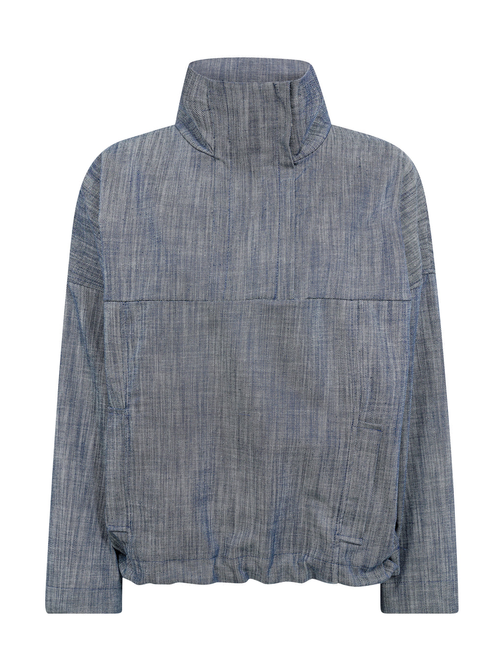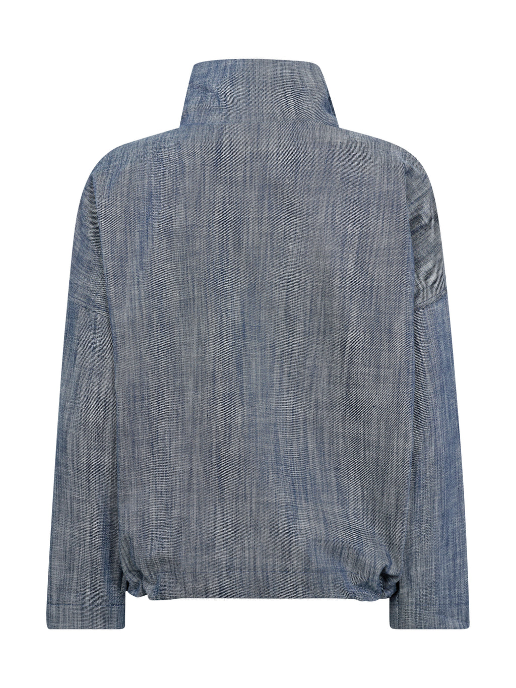 Denne overdelen kombinerer et strukturert materiale med en enkel, men raffinert design. Den har høy krage med kort glidelås, brede ermer og et lett boxy snitt, som gir en avslappet og samtidig velkledd silhuett. Baksiden følger samme enkle uttrykk som fronten, noe som gjør den lett å style på tvers av årstidene.