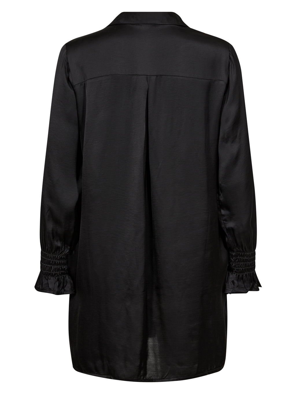 Denne tunikaen er den perfekte kombinasjonen av komfort og stil. Laget av et glansfullt viskosemateriale som gjør den til et luksuriøst plagg for ethvert antrekk. Tunikaen er designet i en løs silhuett med feminin V-hals, en klassisk skjortekrage og lange ermer med fine detaljer av smock. Legg til et snev av glamour til antrekket ditt med denne tunikaen - bruk den med et par hverdagsbukser eller leggings.