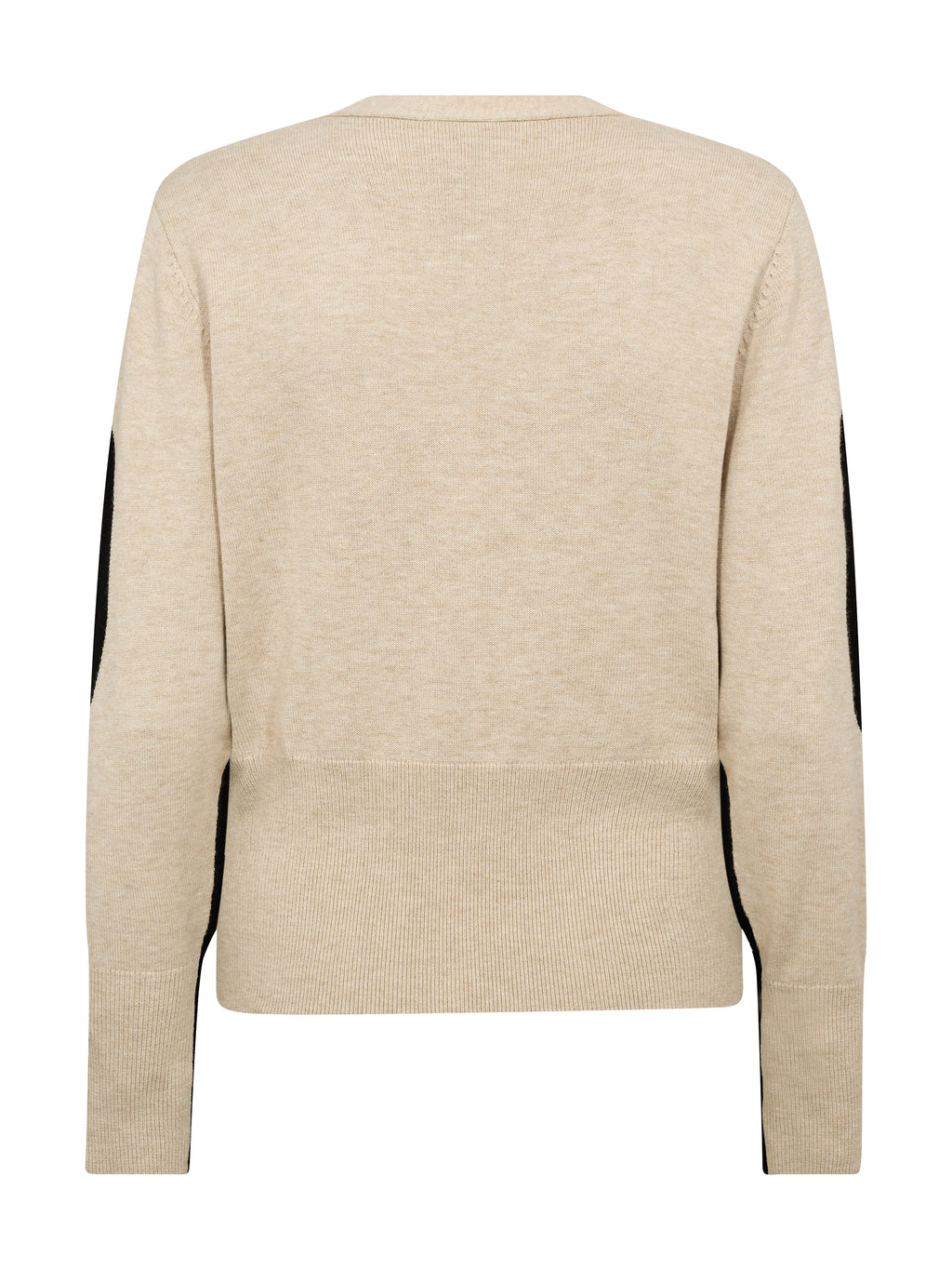 Denne strikkeblusen har et enkelt, men markant uttrykk med kontrastpaneler som gir designet et grafisk spill. Strikkeblusen har en klassisk V-utringning, mens baksiden er mer rolig og skaper balanse i helhetsinntrykket. De lange ermene følger de samme kontrastdetaljene og gir et sammenhengende utseende fra alle vinkler. Style blusen med et par klassiske bukser eller en skjørt for en avslappet, men gjennomtenkt hverdagsantrekk.