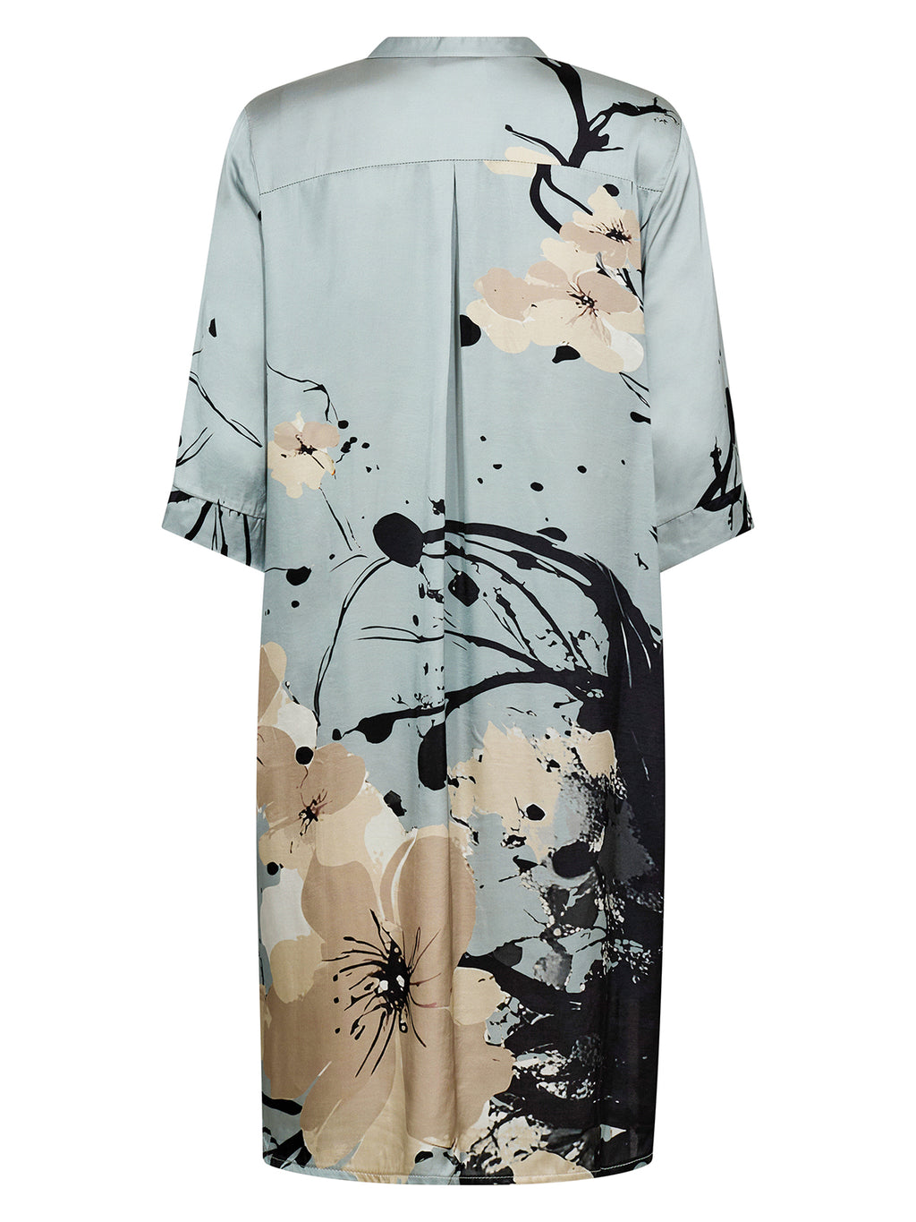 Denne tunikakjolen har et enkelt snitt og en rett passform som faller lett og behagelig langs kroppen. Den åpne V-halsen gir et elegant utseende, mens de 3/4 ermelengdene legger letthet til silhuetten.