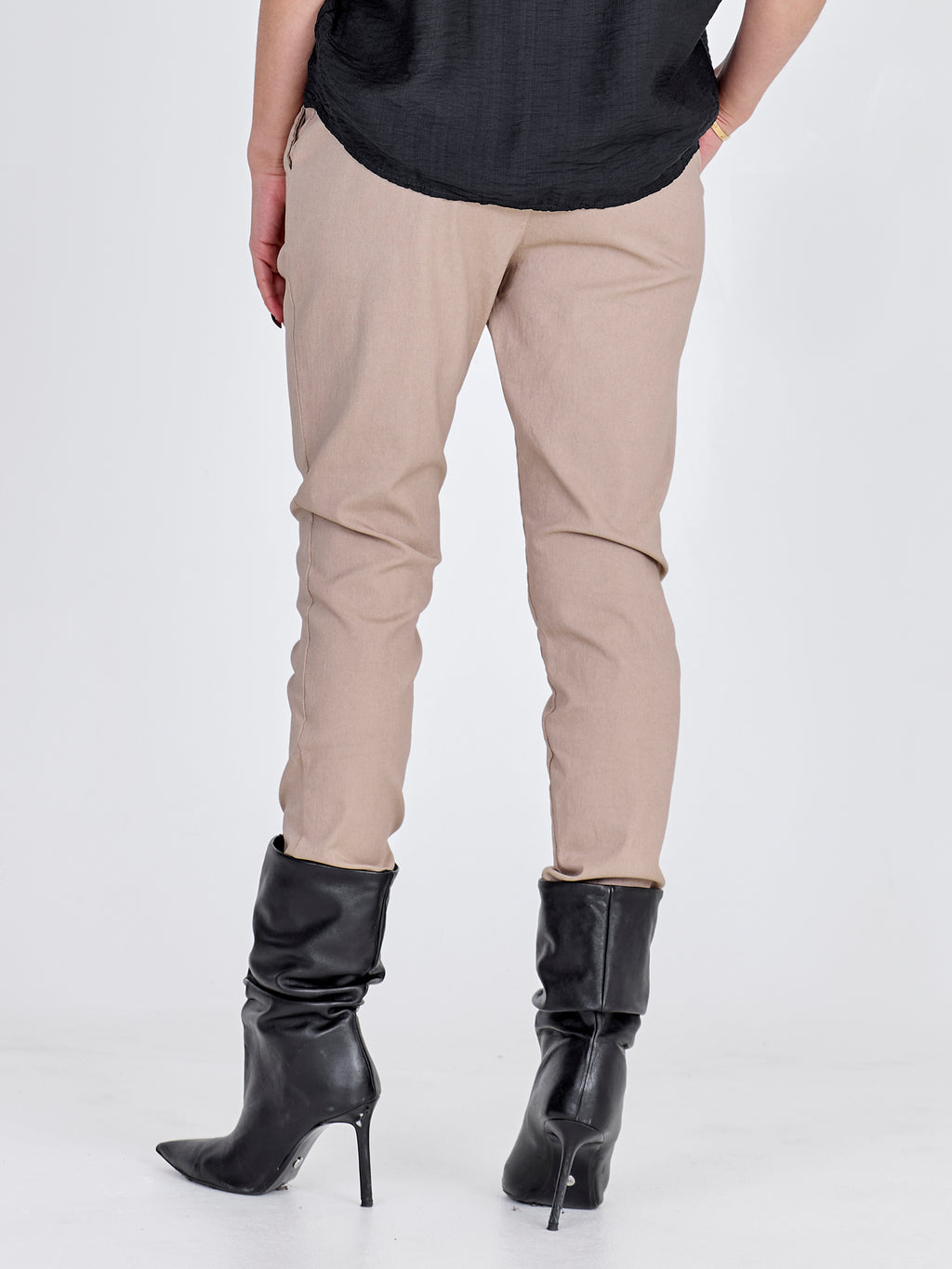 Disse buksene er laget av et mykt viscose stretch-materiale som gir både bevegelsesfrihet og komfort hele dagen. Midjen har elastikk og justerbar snor, som sikrer en fleksibel passform, mens det rette benet og den avslappede passformen skaper et moderne og allsidig utseende. Et par bukser som enkelt kan styles til både hverdagsbruk og mer formelle anledninger - avhengig av hvordan du kombinerer dem.