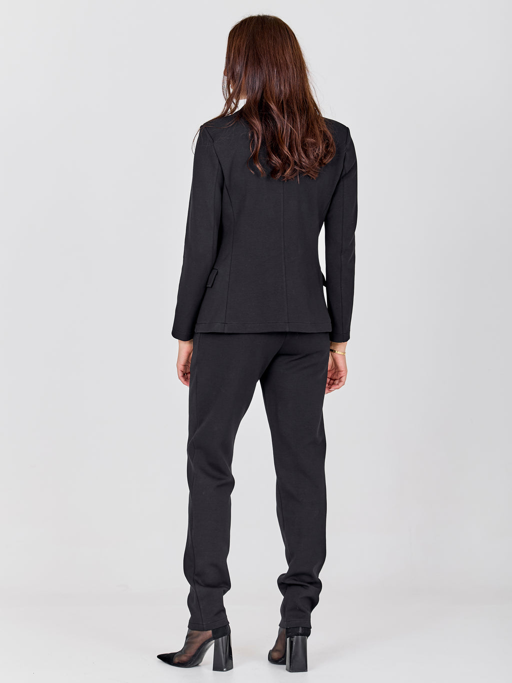 Denne blazeren har en klassisk og enkel uttrykk med en lett figursydd passform som faller pent på kroppen. Forsiden er holdt ren med reverskrage og lukning foran, mens baksiden er enkel og gir et rolig helhetsinntrykk. Passformen gjør den lett å bruke både lukket og åpen, avhengig av hvilket uttrykk du ønsker. Style blazeren med de matchende buksene for et gjennomført sett, eller bruk den over en topp og jeans for et mer avslappet hverdagslook.