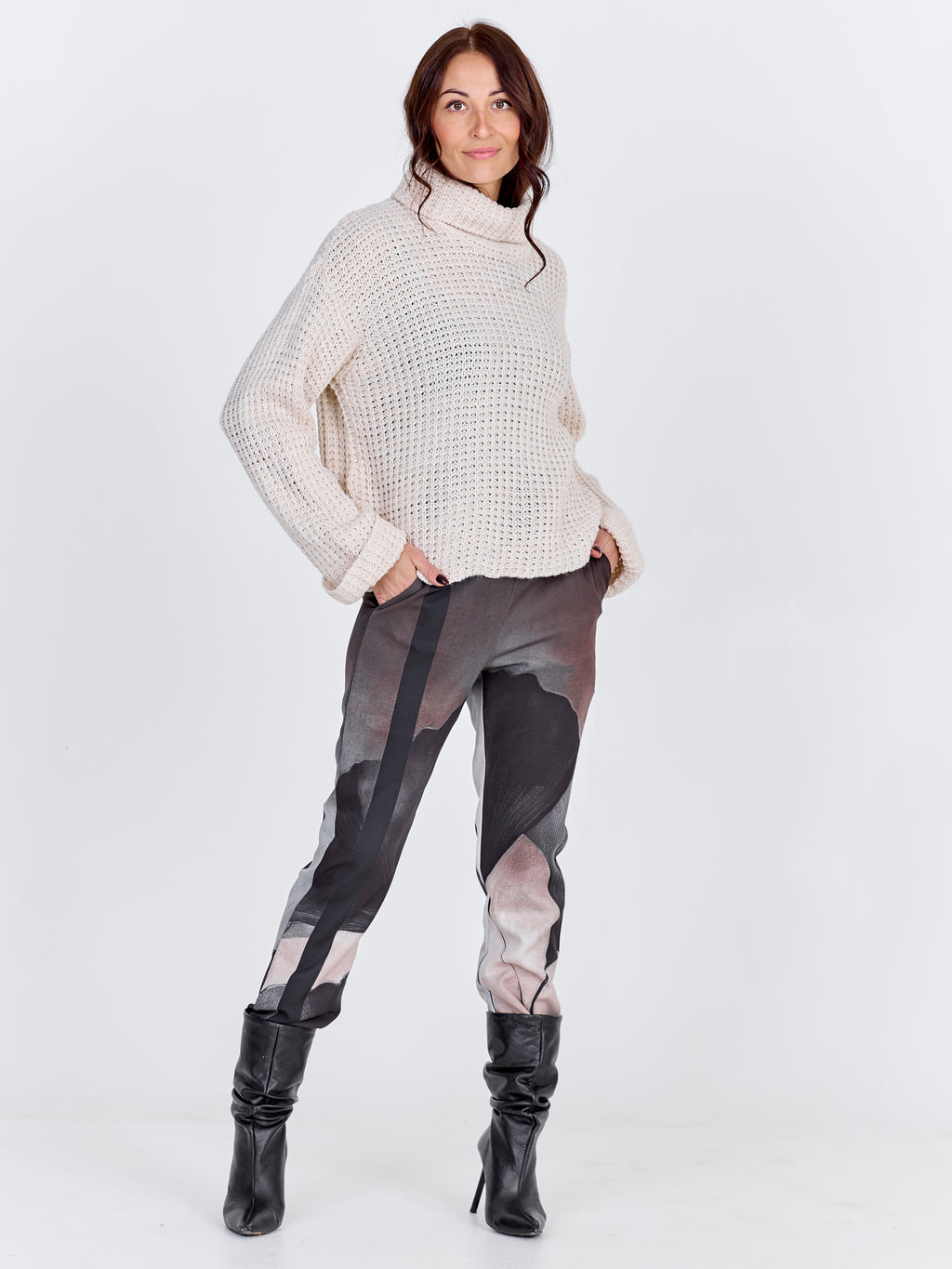 Disse buksene kombinerer en avslappet passform med iøynefallende trykk som gir ditt hverdagsantrekk et moderne og personlig preg. De har en elastisk midje med snøring, noe som gjør dem komfortable å ha på hele dagen, samt ribbekant ved anklene for et stilig og avslappet utseende. Uansett hvilket trykk du velger, får du et par bukser som skiller seg ut - og er samtidig lette å style. Bruk dem med en enkel strikket genser eller en klassisk topp for å la trykket få full oppmerksomhet.