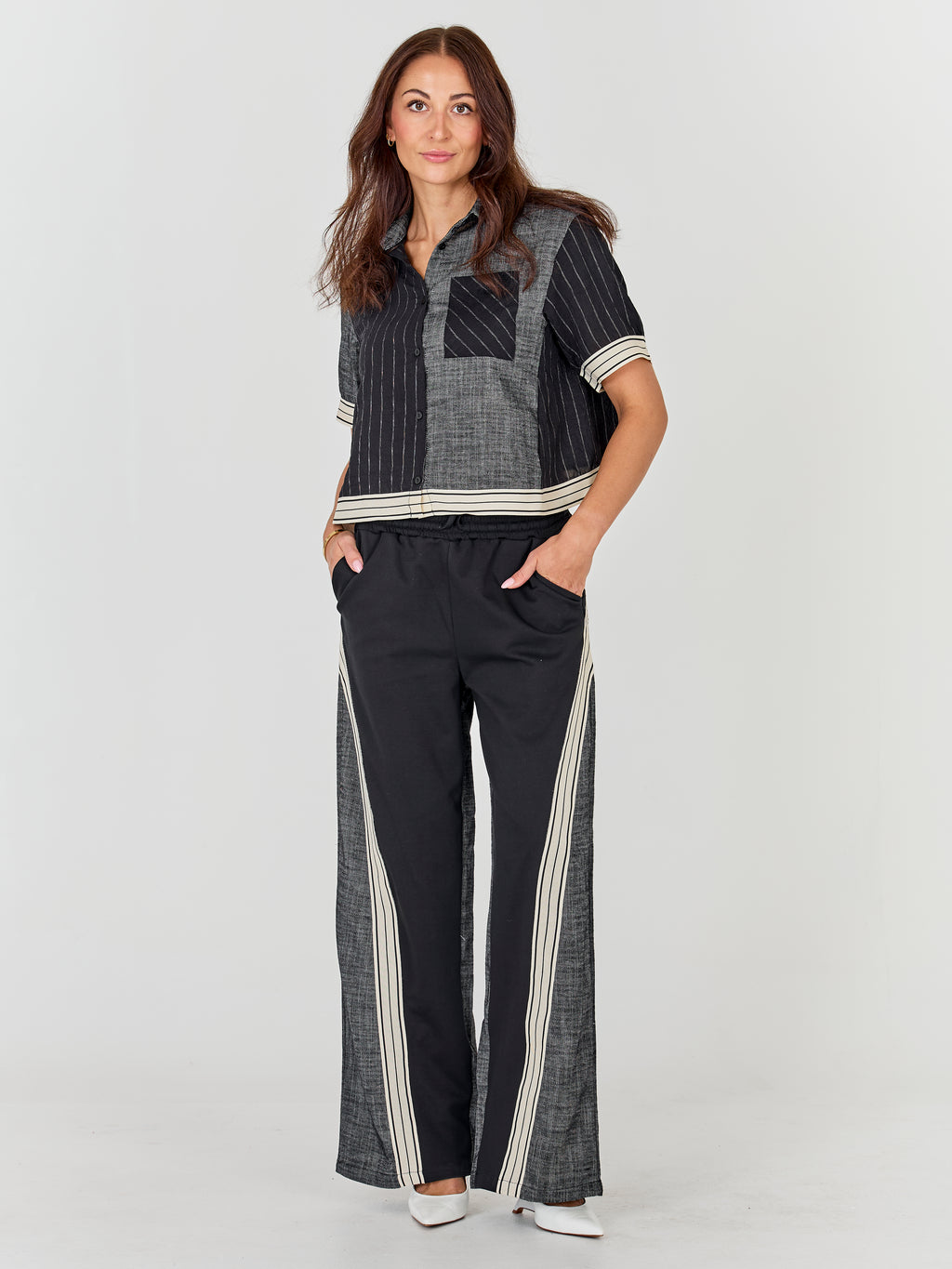 Ha skjorten åpen over en topp og match den med de tilsvarende buksene for en avslappet og stilig hverdagsantrekk.
