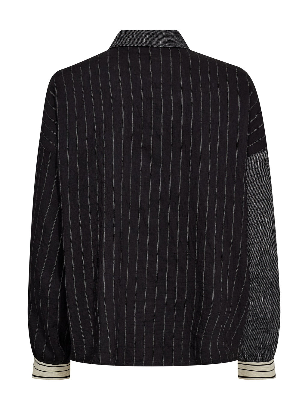 Denne langermede skjorten har et moderne uttrykk med fine, varierte striper som gir et unikt og kult utseende. Skjorten har en klassisk knappe-lukking og en enkel brystlomme, mens de stripede mansjettene legger til en diskret detalj. Den kan enkelt styles med de matchende buksene for et sammenhengende sett, eller kombineres med dine egne favoritter.