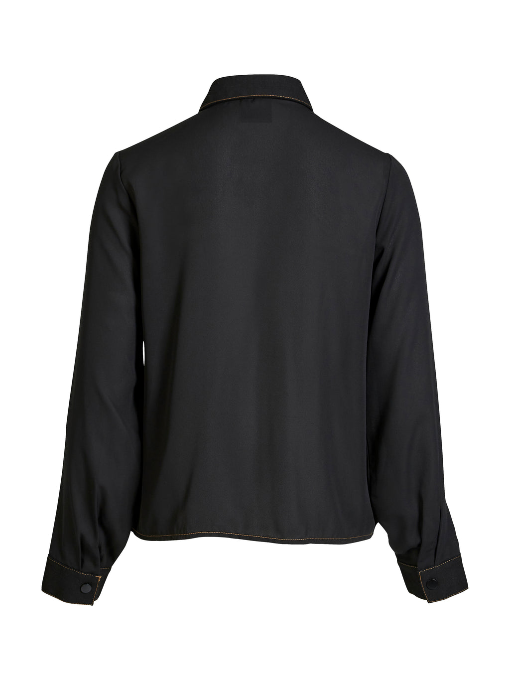 Denne denimskjorten kombinerer en klassisk snitt med moderne detaljer. Den har en knappelukking foran, brystlommer med klaffer og karakteristiske kontrastsømmer som fremhever designets struktur. Materialet er lett og mykt, noe som gjør skjorten behagelig å ha på, enten som et lag eller alene som en lett jakke.