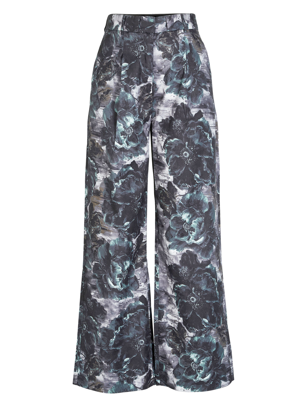 Gi antrekket ditt et kunstnerisk preg med disse buksene med et dristig blomstertrykk. Den vide beinbredden skaper en elegant silhuett, mens legg og sidelommer gir struktur og funksjonalitet. Lukningen består av en glidelås, en indre hekte og knapp, samt en elastisk linning på innsiden, noe som sikrer en behagelig og fleksibel passform.