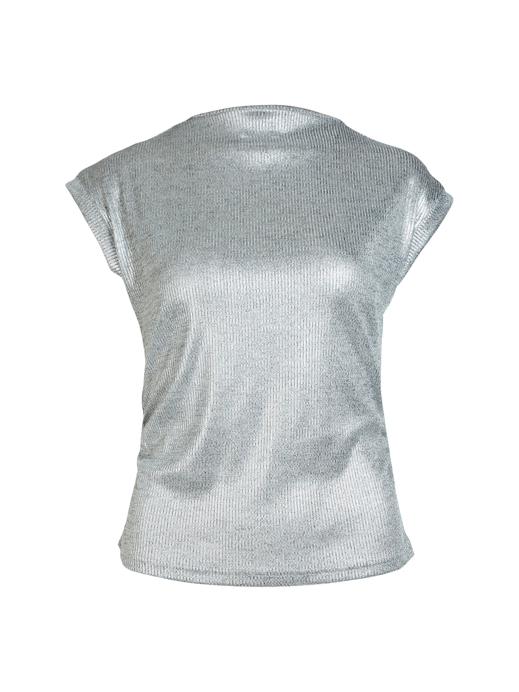 Legg til en dose glans i garderoben din med denne stilige toppen. Den har en enkel rund hals og korte opprullede ermer, mens det lett glitrende materialet gir en elegant finish. Den løse passformen gjør den behagelig å ha på seg og enkel å style både for dag og kveld.