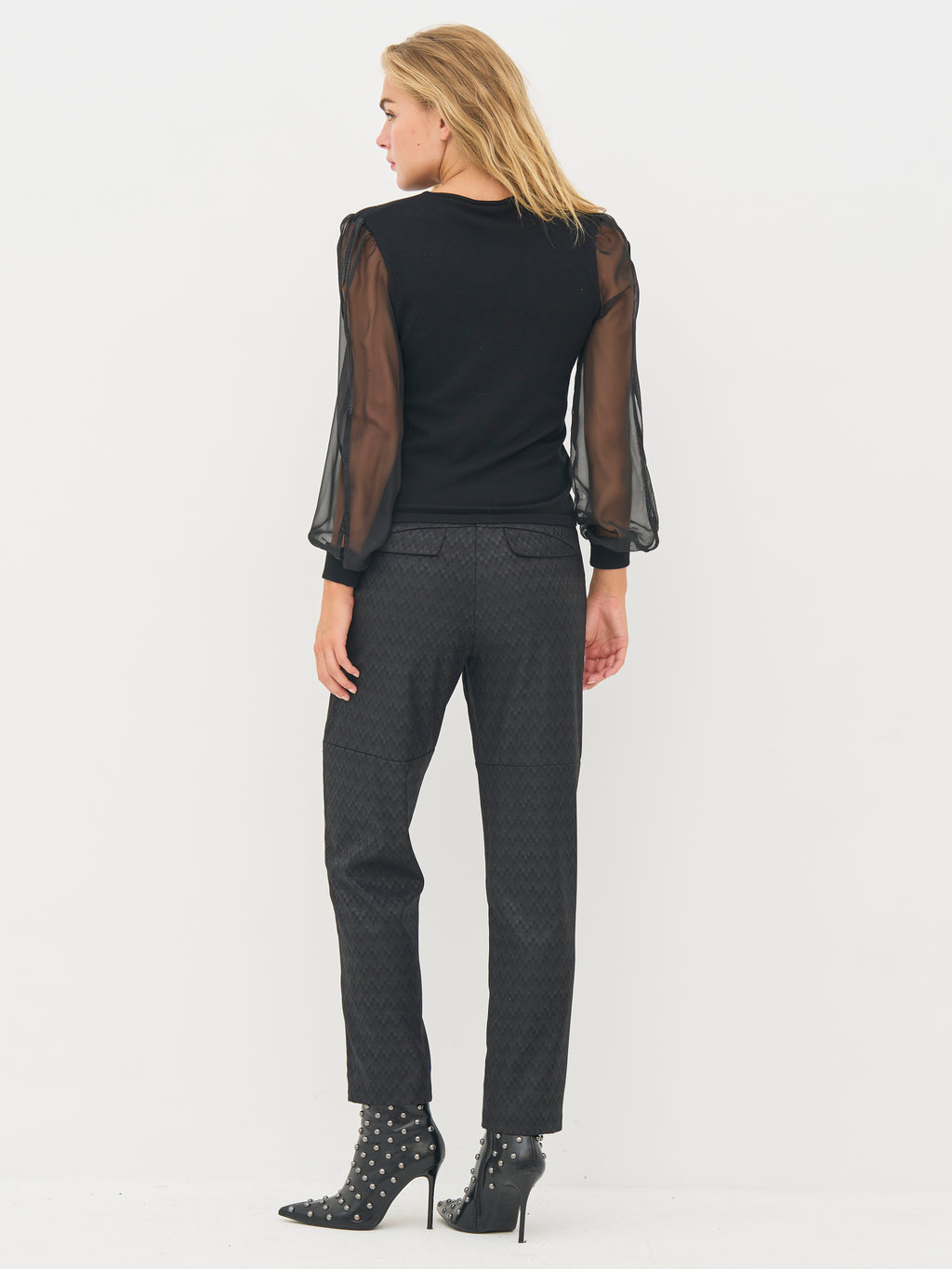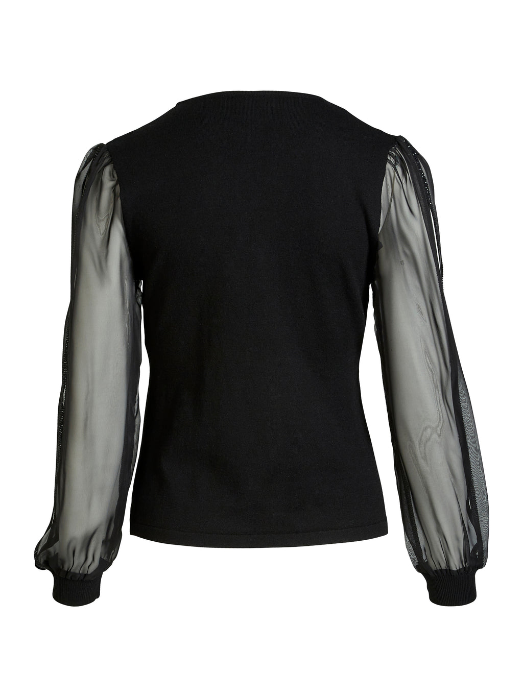 Legg til en feminin og sofistikert touch på garderoben din med denne strikkede blusen. Den har en flatterende omslagsvirkning foran og myke, gjennomsiktige ballongermer som skaper en delikat kontrast til den tettvevde strikke kvaliteten på kroppen. De ribbestrikkede mansjettene fullender designet og sikrer en god passform.