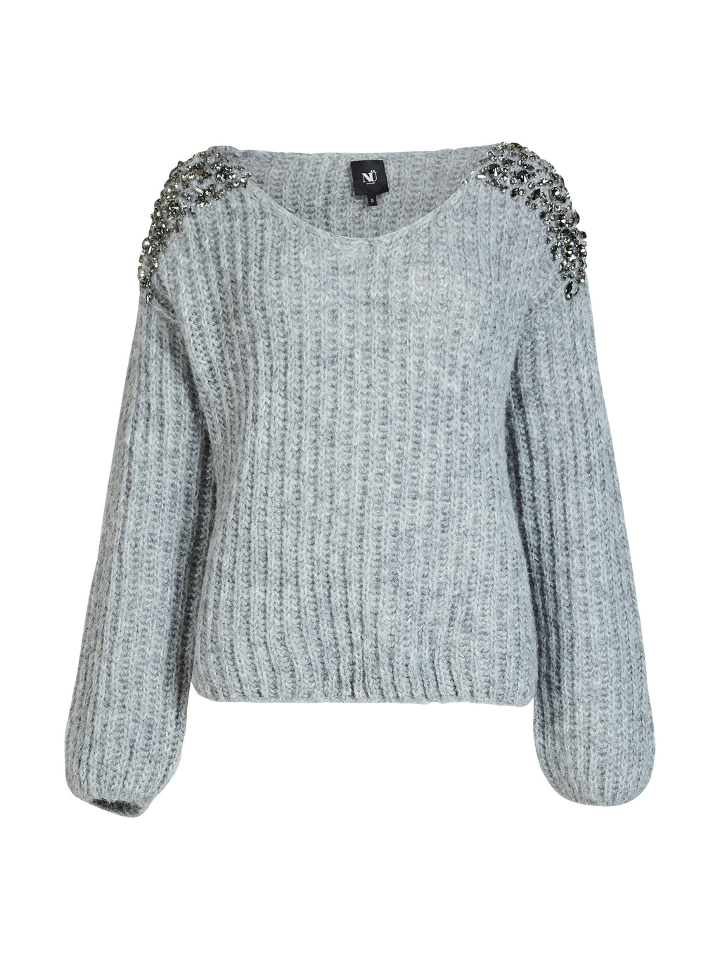 Løft antrekket ditt med denne strikkede blusen, som kombinerer myk komfort med rå detaljer. Den har en solid ribbstruktur og en løs, behagelig passform. Blusen har dekorative nagler på skuldrene, noe som gir en kul og iøynefallende vri på det klassiske strikkedesignet.