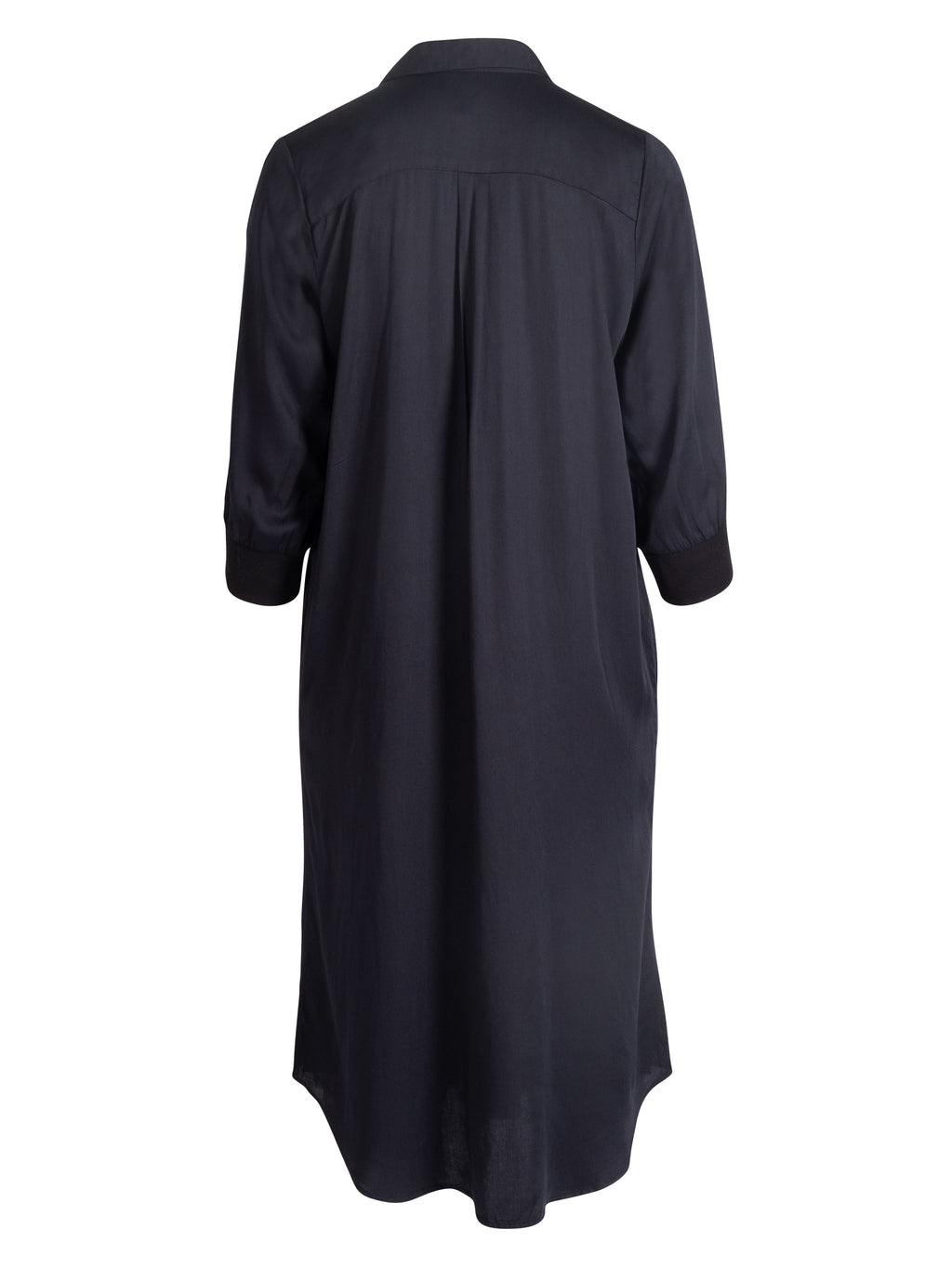 Denne kjolen kombinerer enkelhet og fine detaljer på en elegant måte. Den har en rett, løs passform med knapper hele veien nedover fronten, og de 3/4-lange ermene er avsluttet med brede mansjetter. Toppen er dekorert med tone-i-tone broderier og små perler, som tilfører et raffinert uttrykk. Den myke draperingen av stoffet gjør det behagelig og enkelt å style for ulike anledninger.