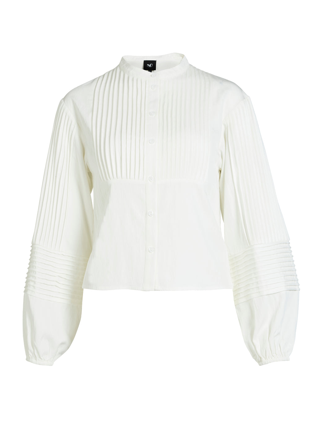 Tilføy et elegant og moderne element til garderoben med denne skjorten, som kombinerer klassisk snitt med dekorative legg. De vertikale leggene på forsiden og ermene gir struktur og en eksklusiv fremtoning, mens de lett ballongformede ermene med elastikk nederst tilfører en myk motvekt til skjortens skarpe linjer.