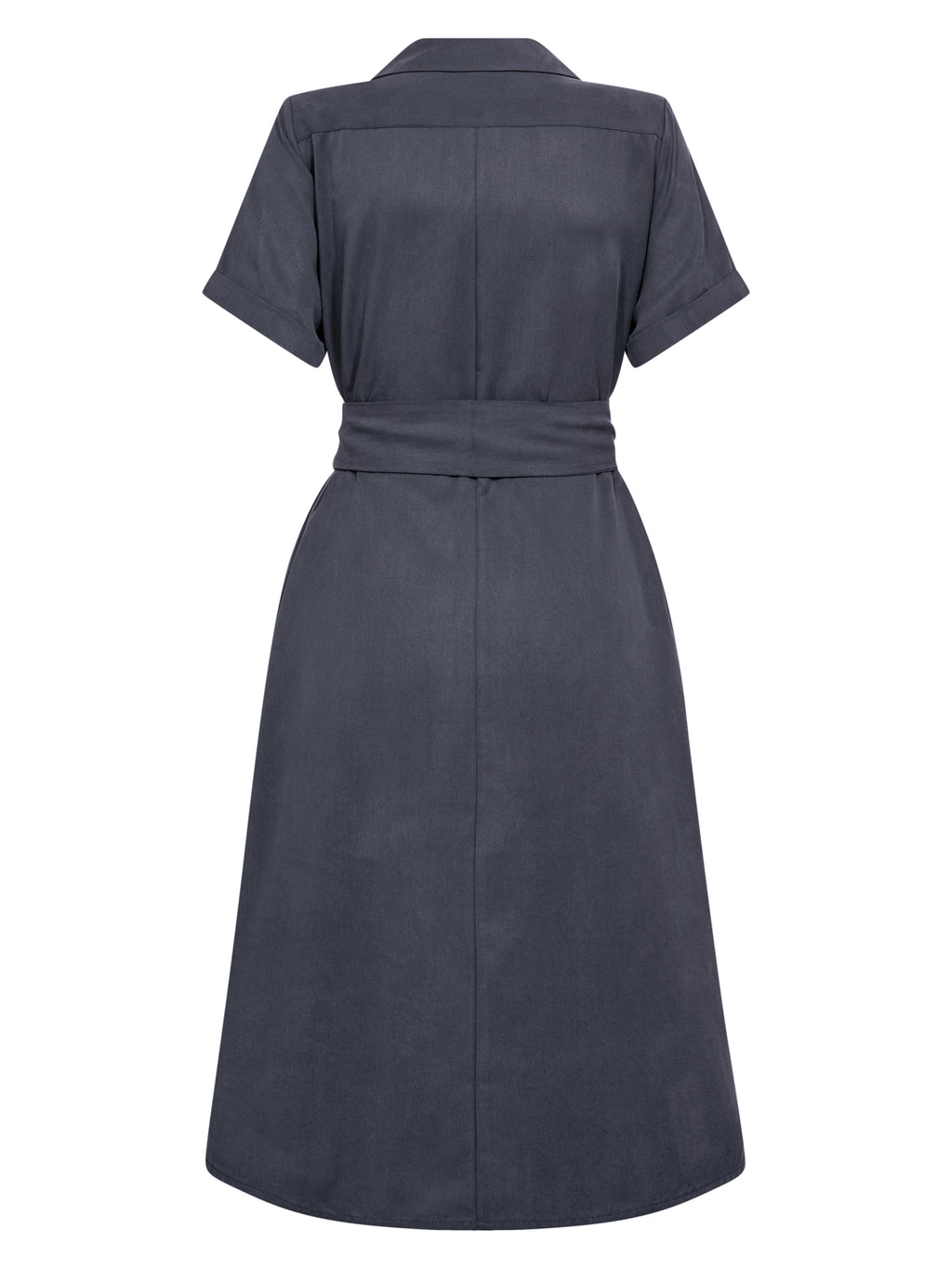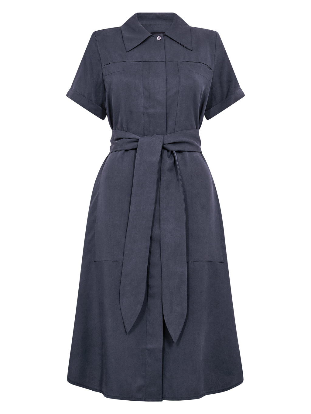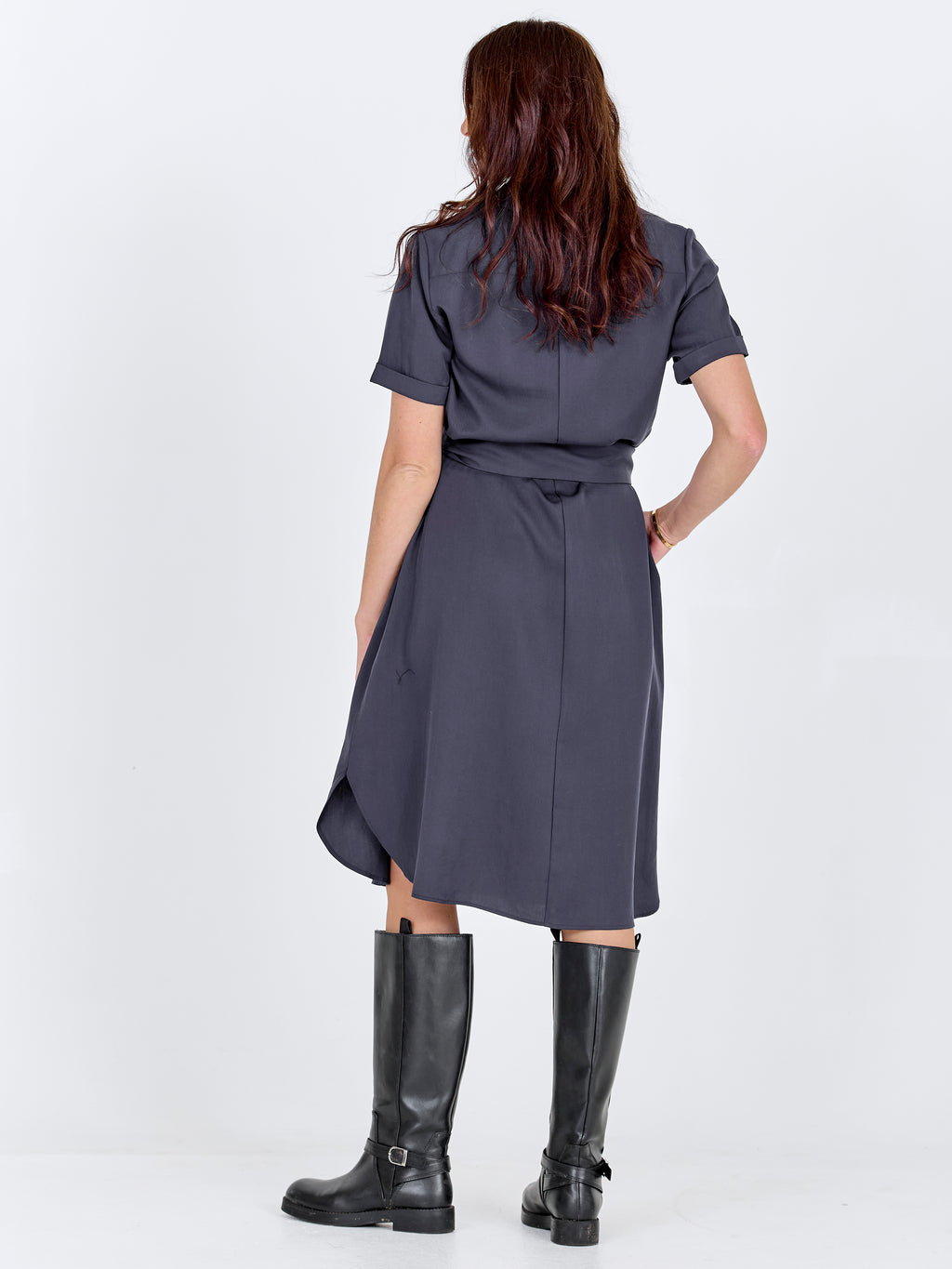 Denne kjolen har et elegant og avslappet utseende med sin skjortekrage, 3/4-ermer og rene linjer. Det brede belte i midjen lar deg forme silhuetten, mens de fine brettene foran gir litt bevegelse til skjørtet. På baksiden har kjolen en myk, fallende passform og små splitt i sidene, som gir ekstra komfort. Styl den med sandaler for en avslappet look eller med støvler for et mer iøynefallende utseende.