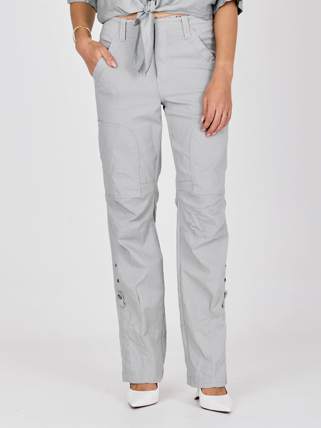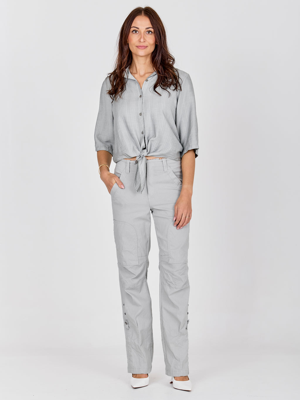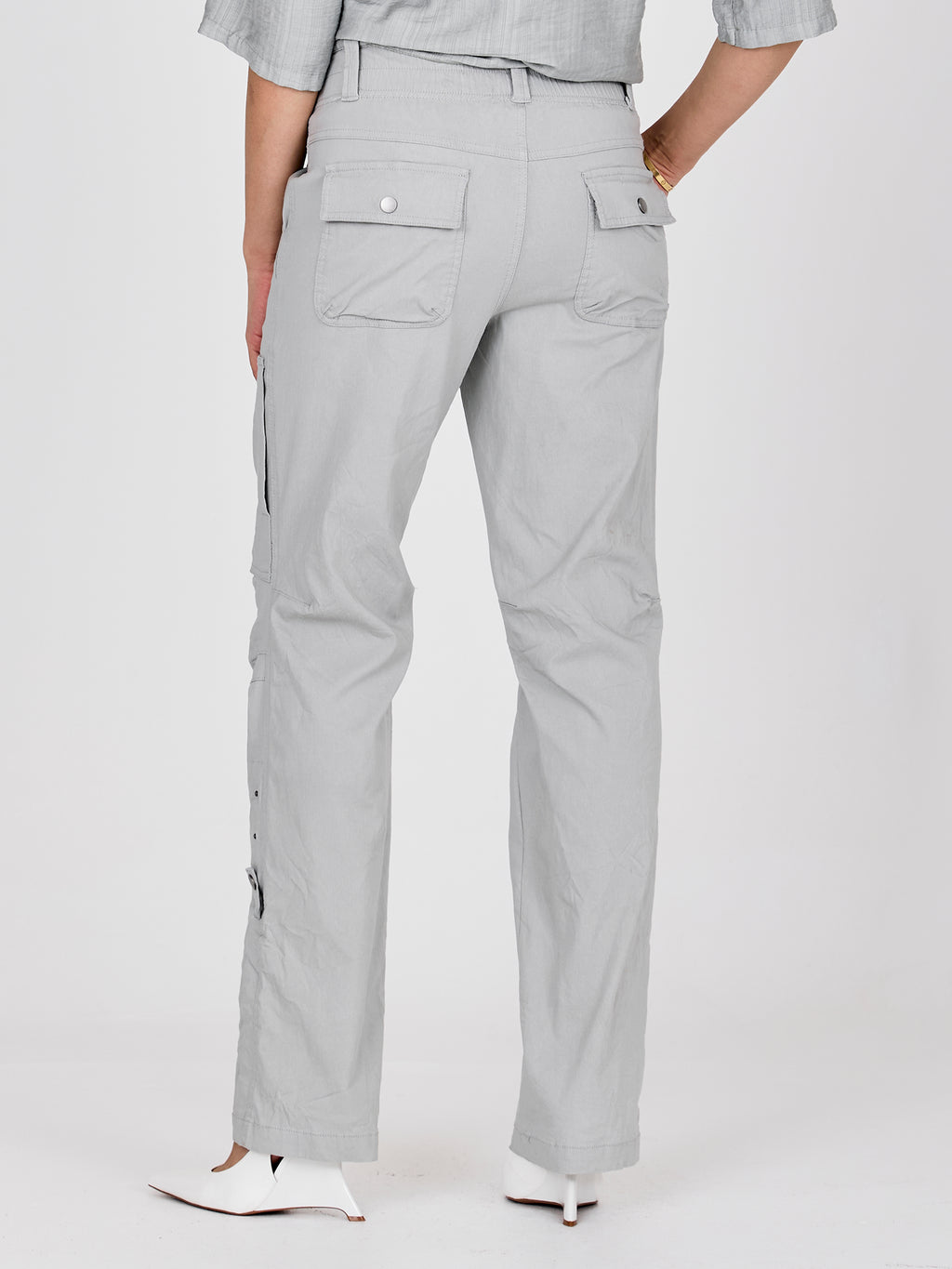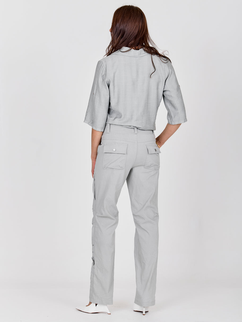 Disse buksene har en avslappet passform med rette ben og et funksjonelt utseende som gjør dem enkle å bruke i hverdagen. Fronten lukkes med to knapper plassert ved siden av hverandre, noe som gir en liten vri til det ellers enkle designet, og de skrå lommene støtter det praktiske utseendet. Sømmer ved knærne tilfører ekstra struktur, mens baksiden har lommer og et mer avslappet utseende. Style dem med en skjorte, lett strikkegenser eller en enkel topp for en anvendelig hverdagsantrekk.