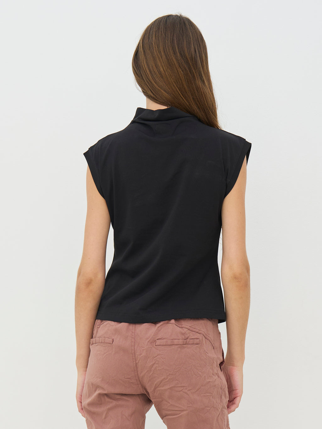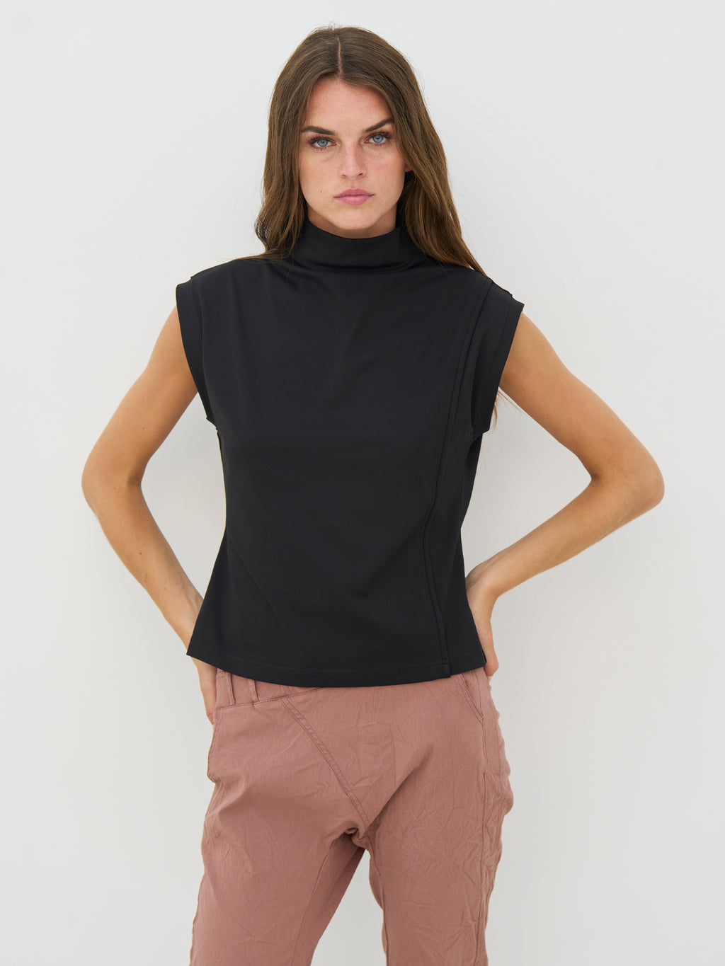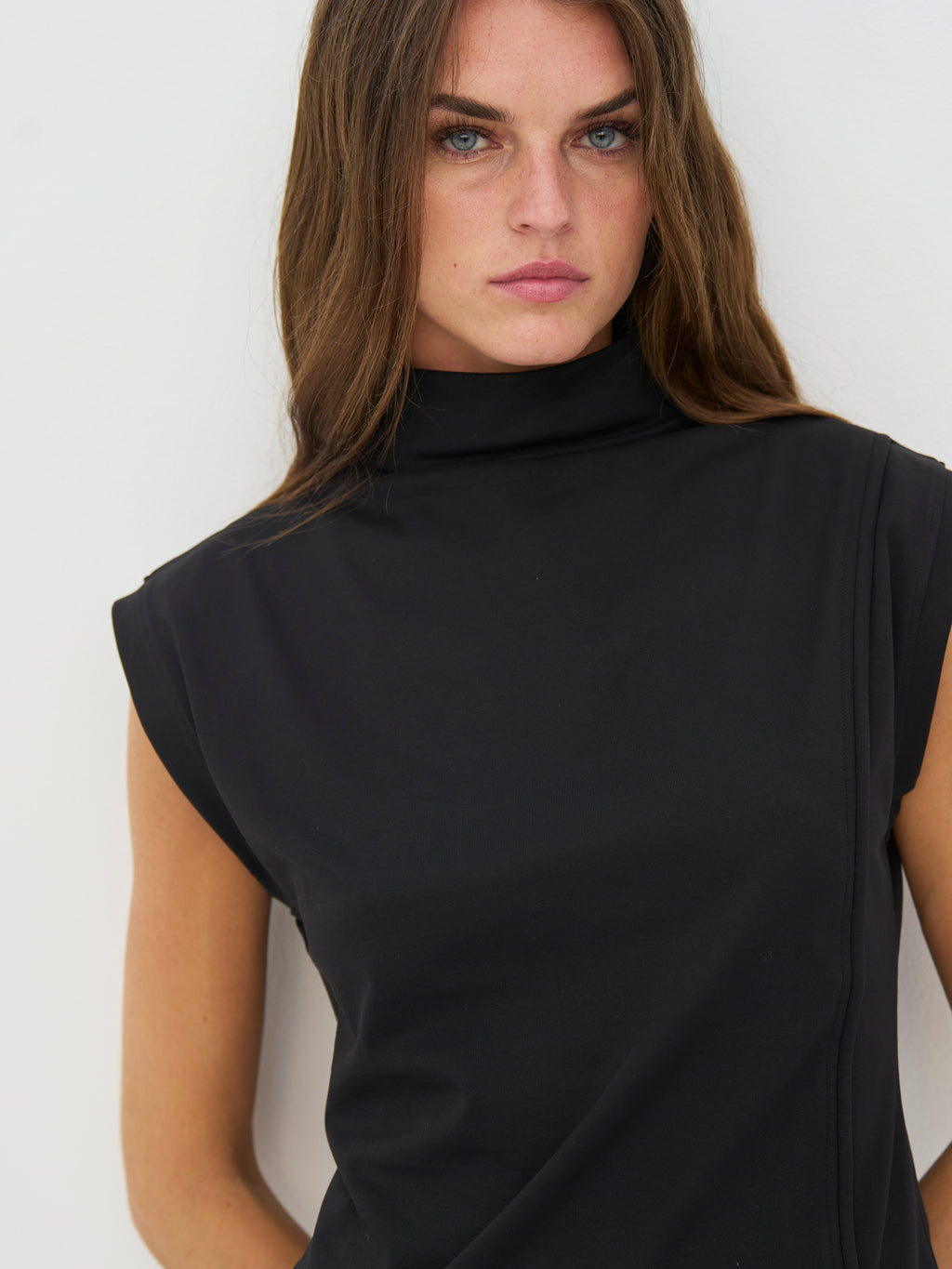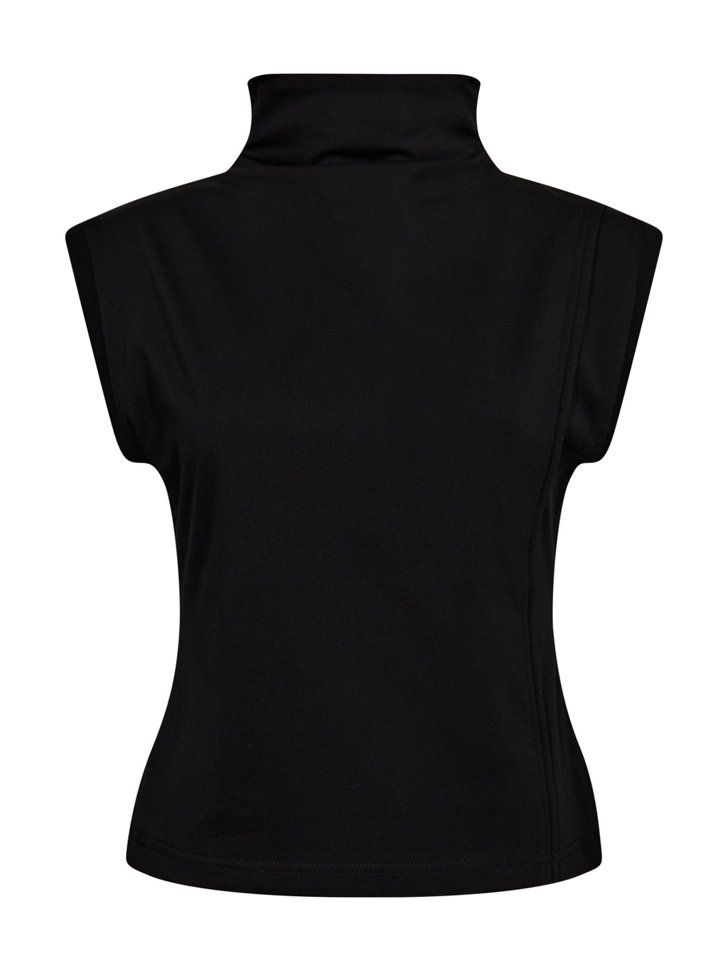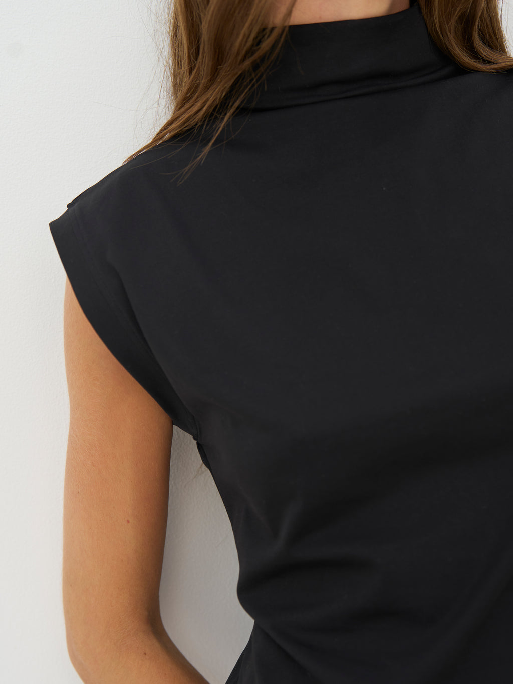 Denne toppen har et rent og enkelt uttrykk med høy hals og en rett passform. De lette skuldrene gir litt struktur, mens det strekkbare materialet sikrer god komfort og bevegelsesfrihet. Designet er holdt veldig enkelt både foran og bak, noe som gjør det enkelt å style toppen på mange forskjellige måter. Bruk den med bukser og skjørt - alene eller under en blazer for et kult, gjennomtenkt utseende.