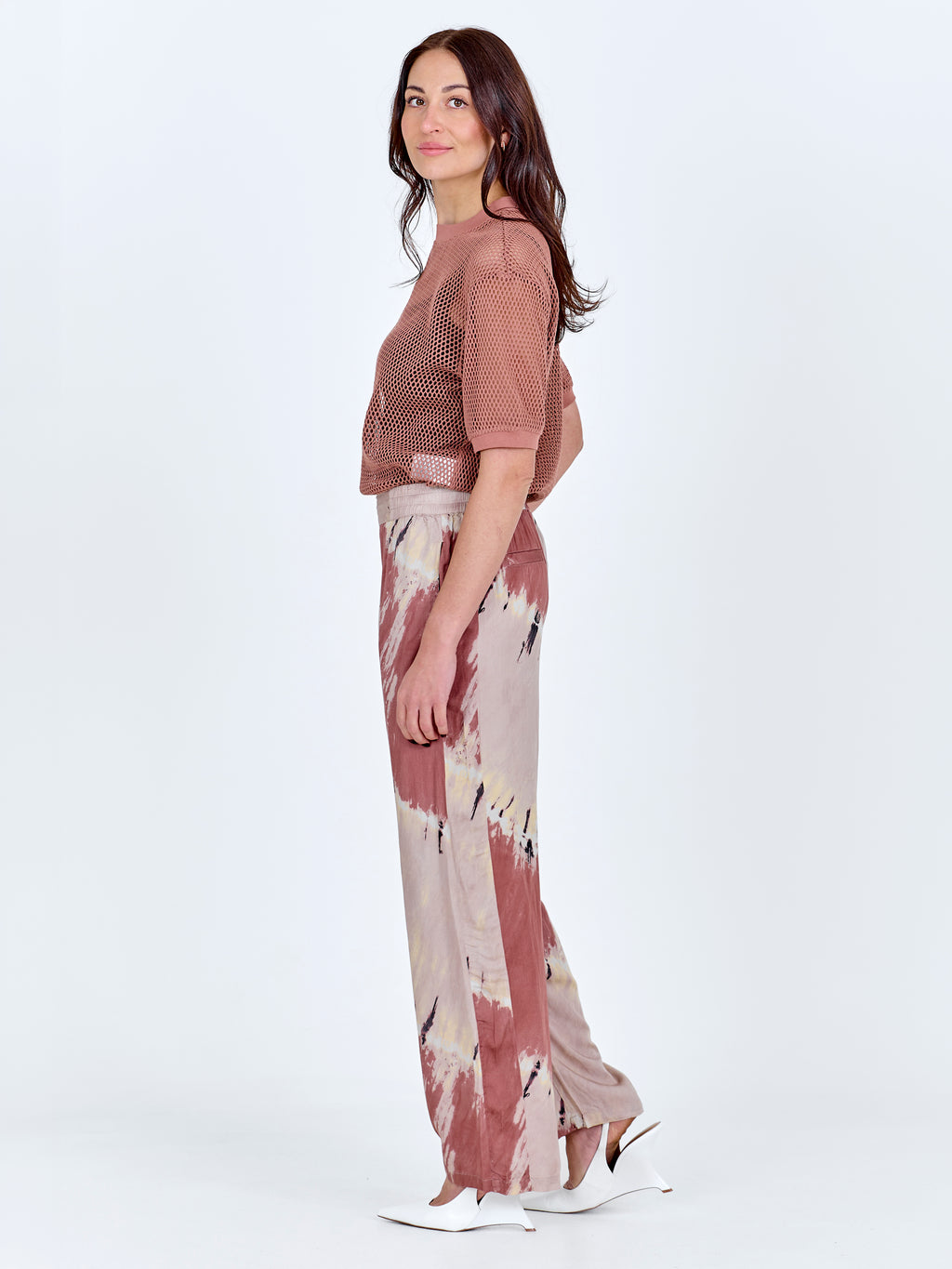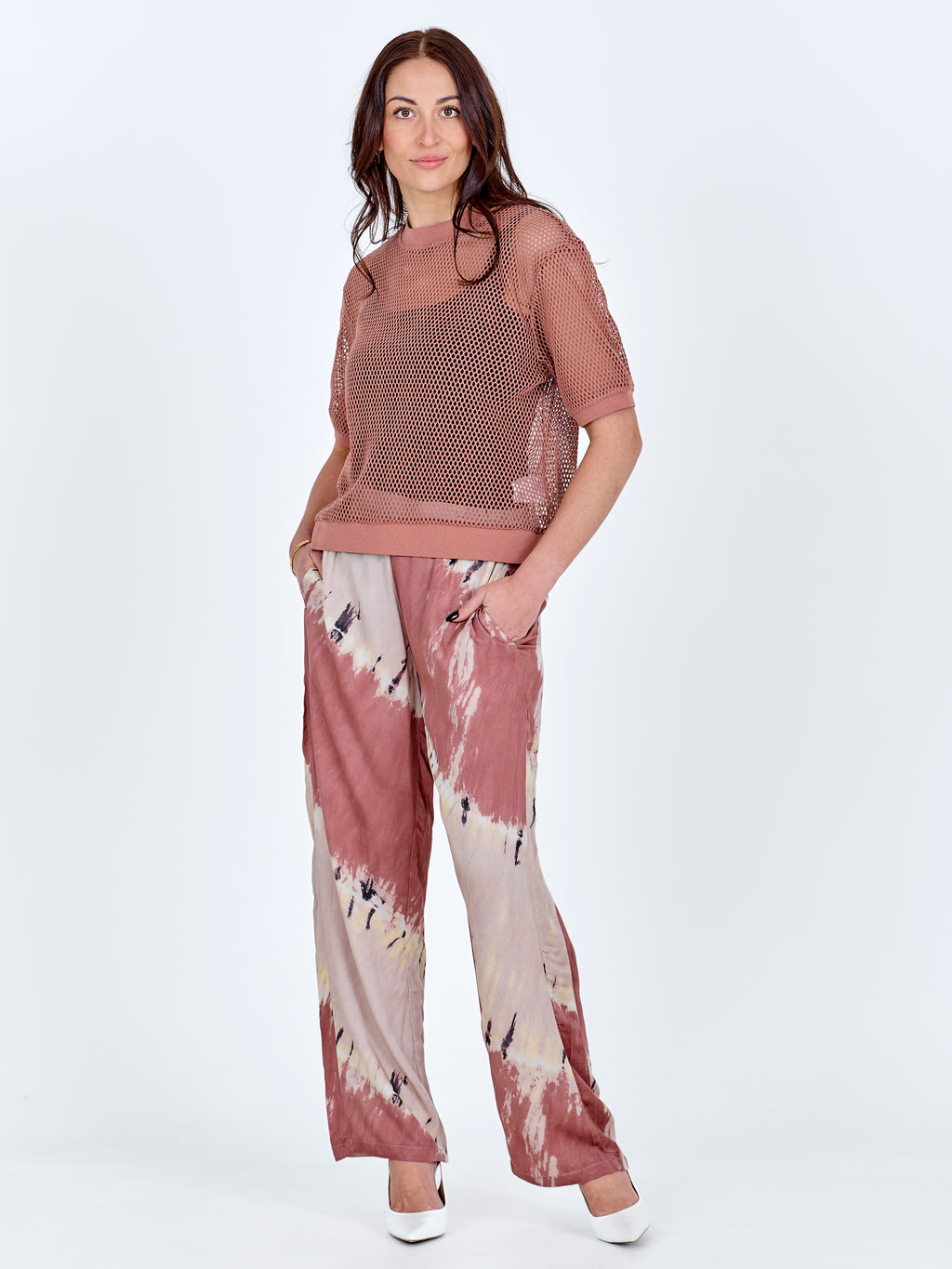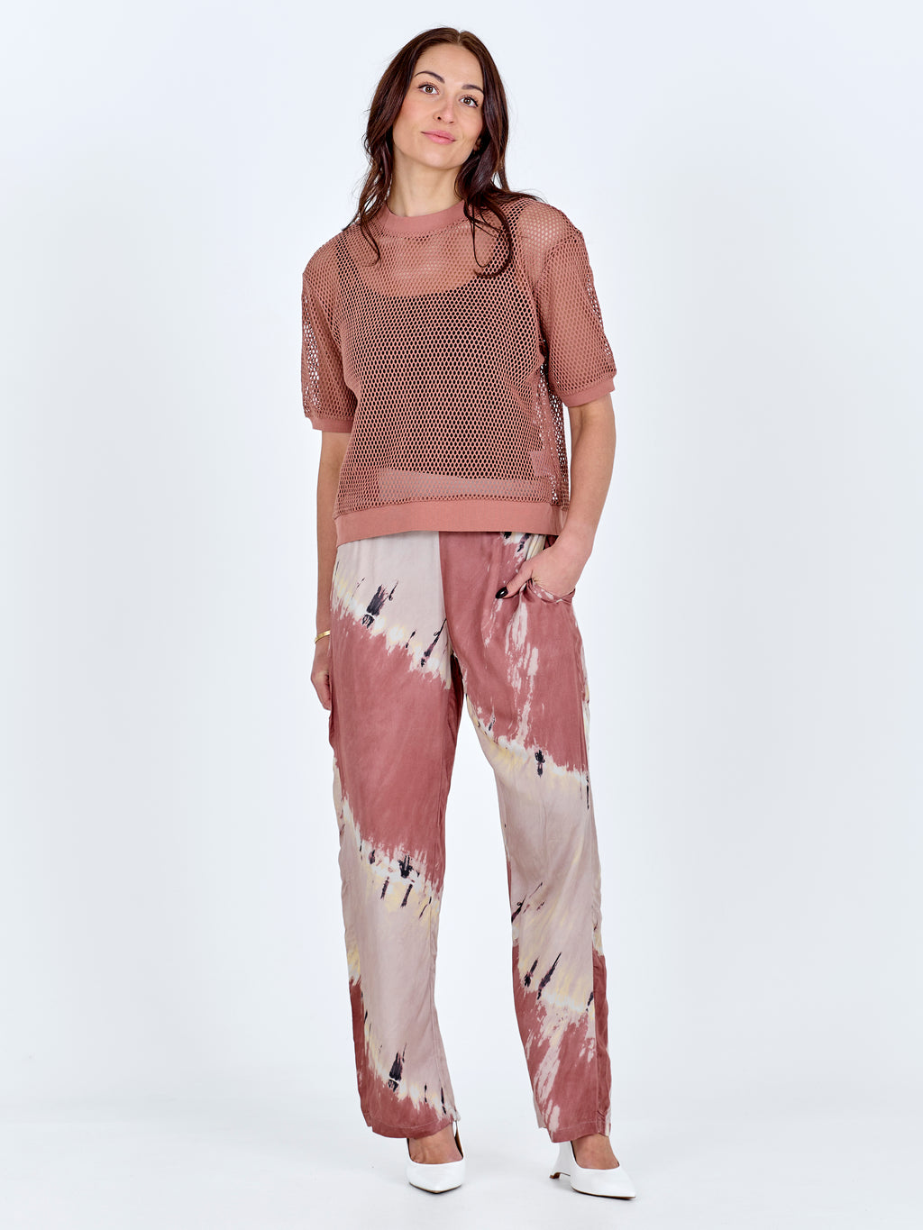 Denne toppen har en avslappet stil med korte ermer og rett passform. Det gjennomsiktige hullmønsteret gir et lett og røft utseende, mens ribbekanter ved hals, ermer og bunn skaper en tydelig avslutning. Baksiden er enkel og følger samme uttrykk som fremsiden. Styl den med en topp under, enten til bukser eller skjørt for en avslappet hverdagslook.
