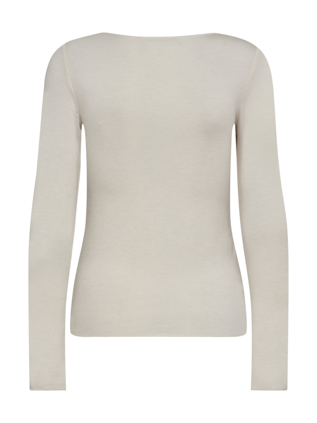 Denne basisblusen har et enkelt og tidløst utseende med lange ermer og rund hals. Passformen er lett figursydd og følger kroppen på en behagelig måte. Forsiden er enkel og uten detaljer, mens baksiden har samme enkle snitt, noe som gjør blusen lett å bruke gang på gang. Den fungerer både alene og som lag under skjorter, strikk eller jakker. Style den med bukser, skjørt eller under en åpen cardigan for et rolig og allsidig hverdagsutseende.