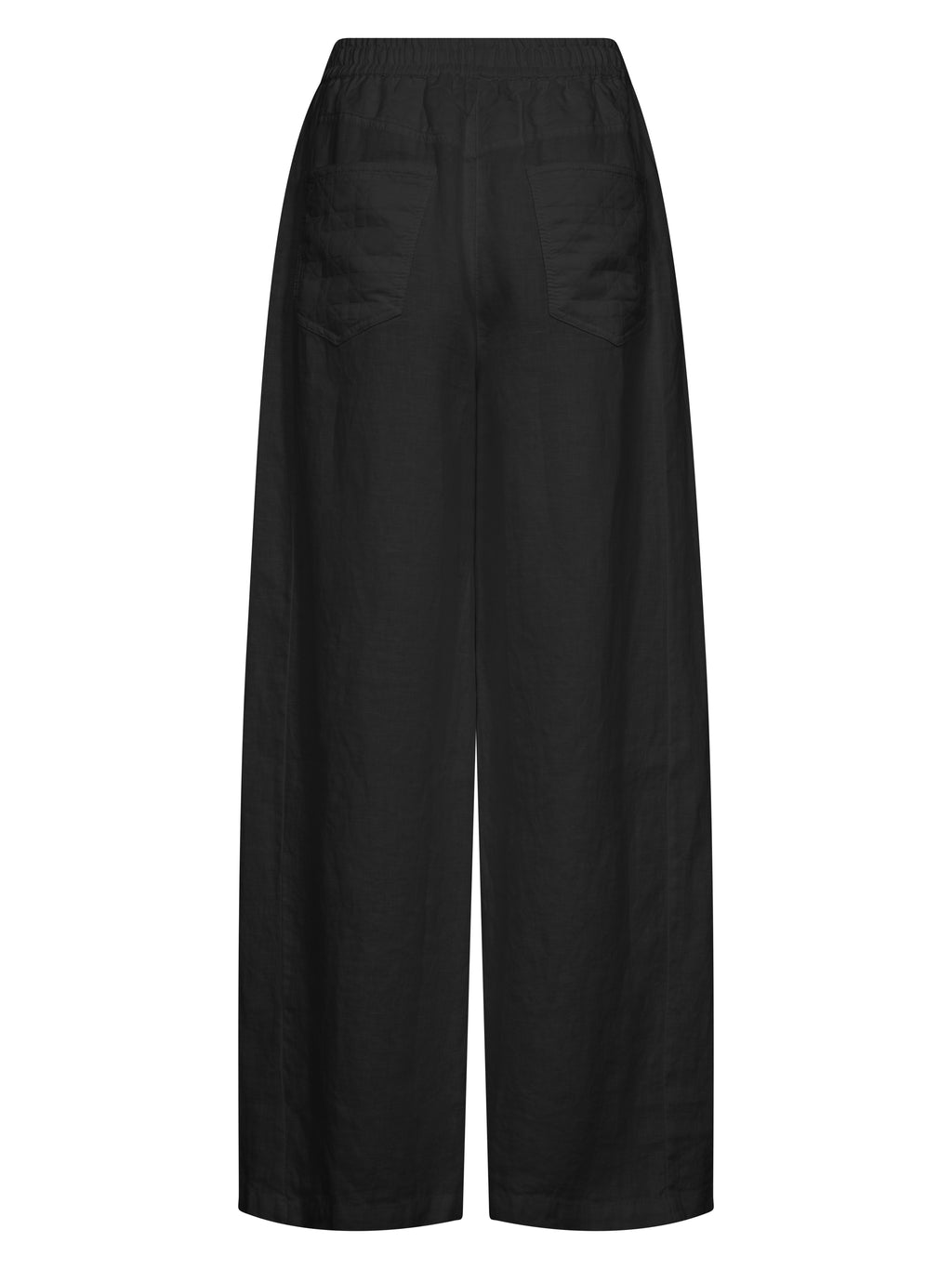 Disse buksene er laget i lin, noe som gjør dem lette og pustende - ideelle for varme dager. De har en avslappet passform med vide ben som faller løst og gir god bevegelsesfrihet. Livet er elastisk med snøring, slik at passformen enkelt kan justeres. De subtile søm-detaljene legger til et rolig spill på overflaten, mens designet på baksiden forblir enkelt.