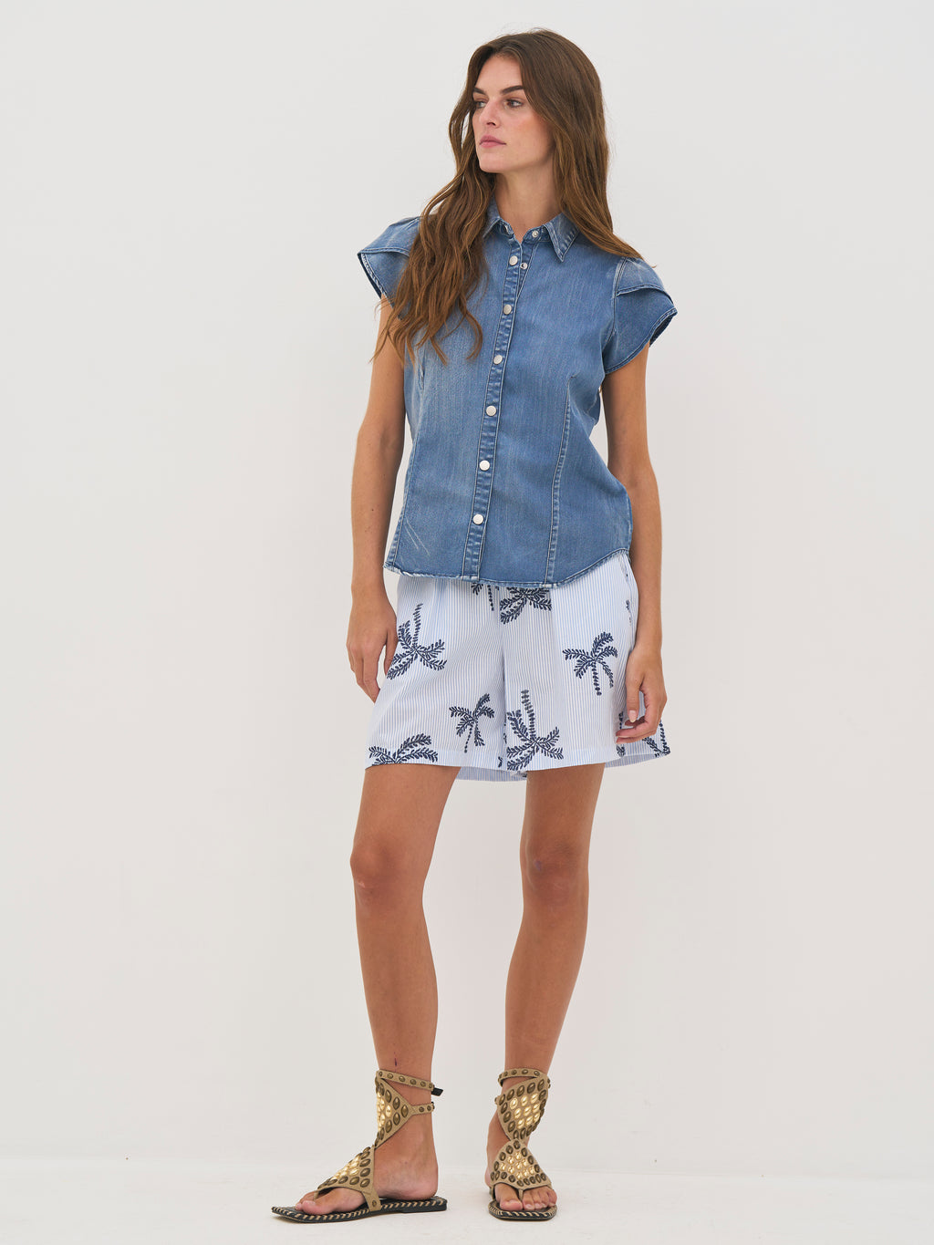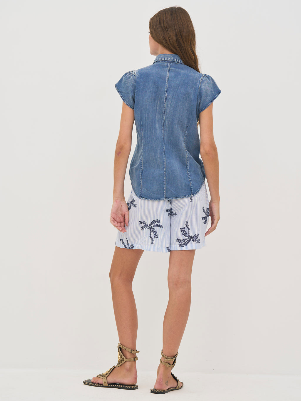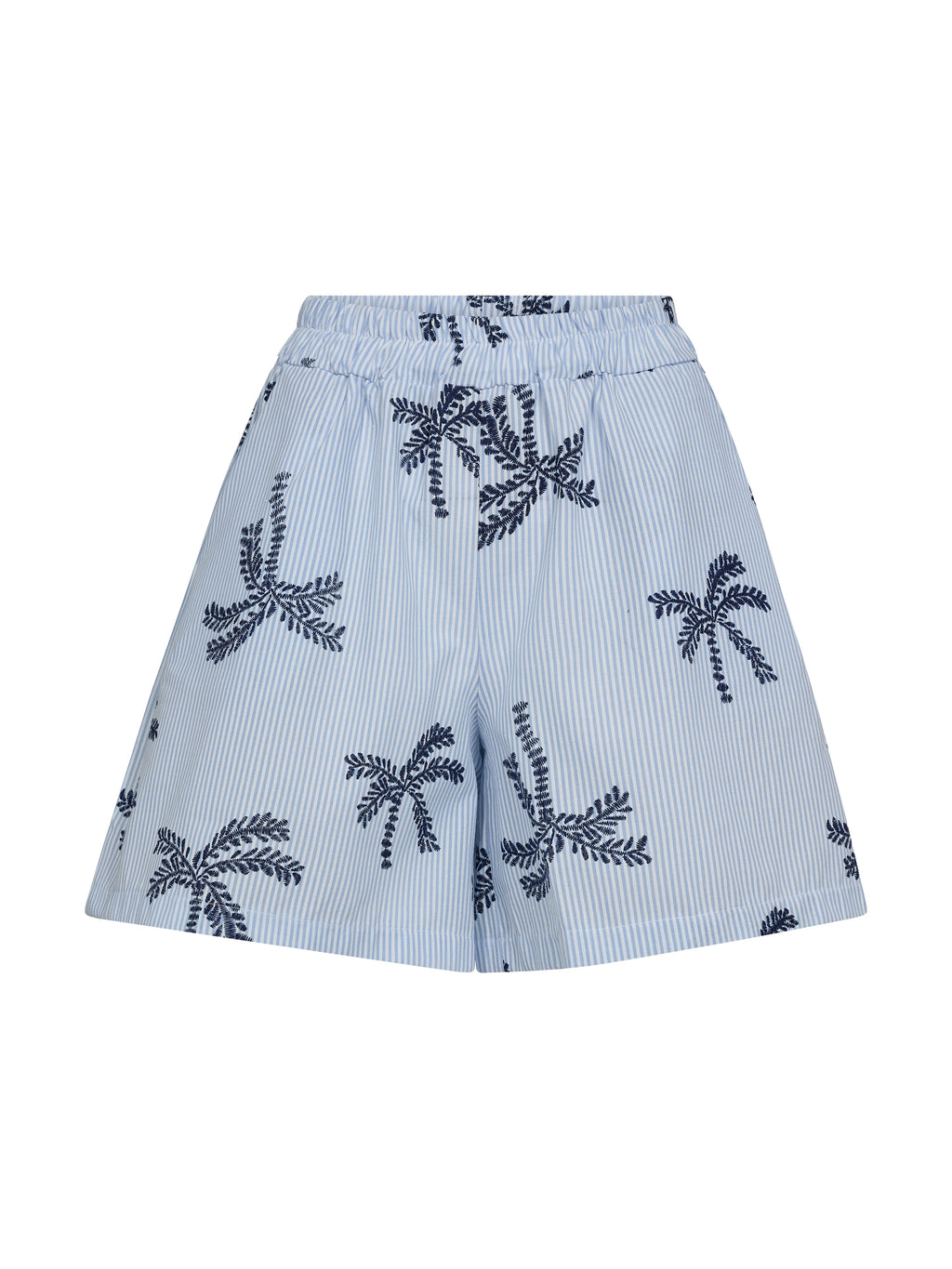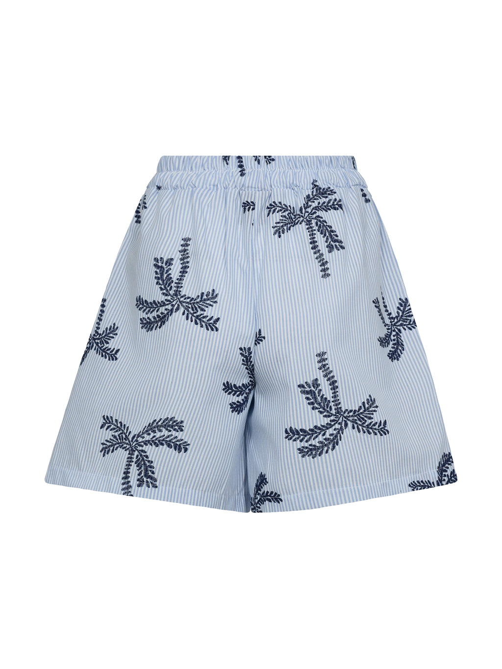 Disse shortsene er laget av en myk bomullsblanding som gir en lett og behagelig følelse. De har en avslappet passform med strikk i midjen for en fleksibel og komfortabel passform. Det fine stripede mønsteret kombinert med broderte palmemønstre gir en sommerlig og avslappet look.